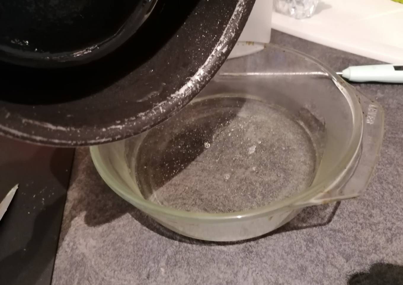 - Lorsque la température est atteinte débarrassez dans un plat idéalement en verre résistant à la chaleur type Pirex.