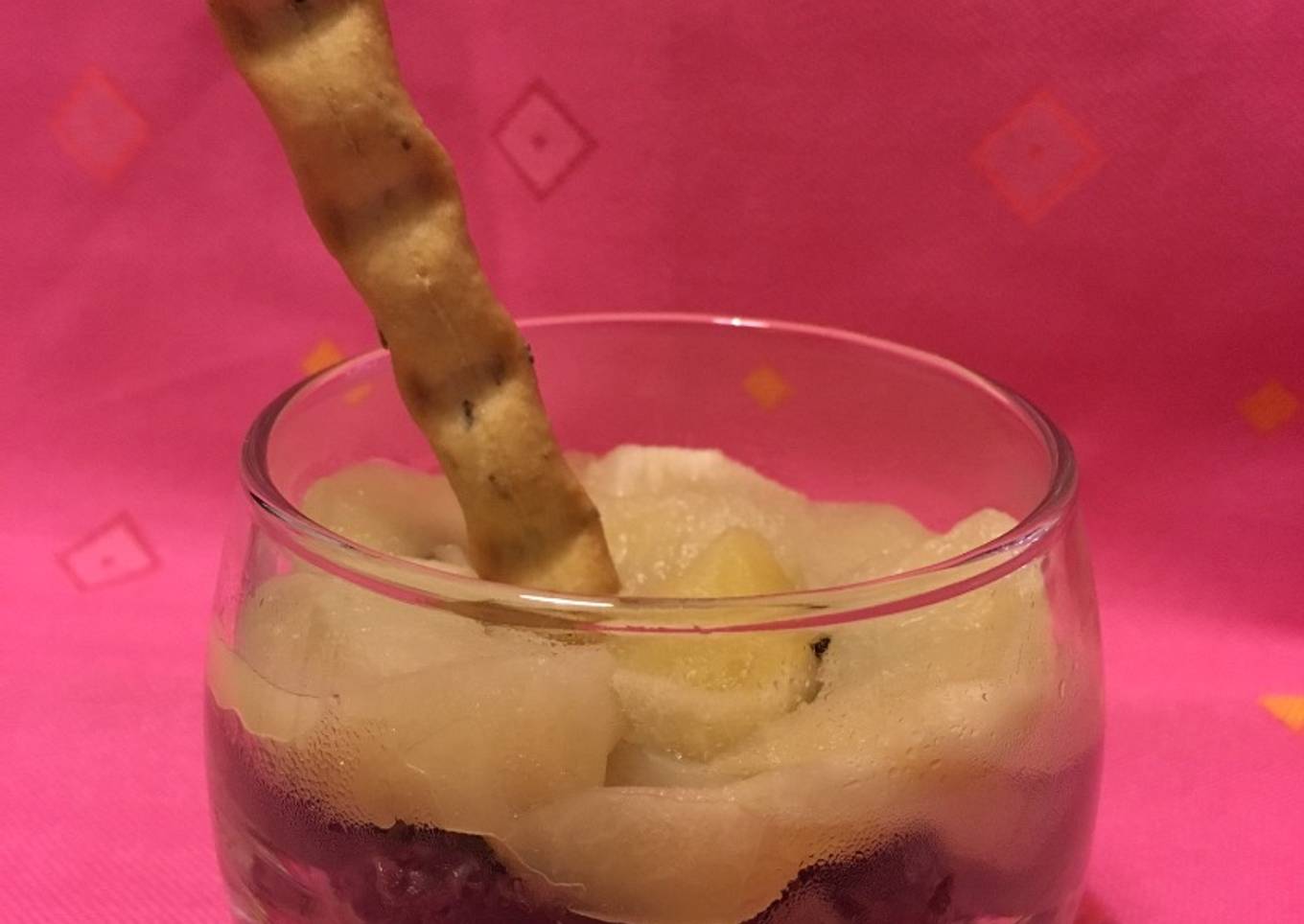 - Servir le boudin au fond des verres puis déposer les pommes en rosace dessus. Décorer avec un gressin et servir chaud.